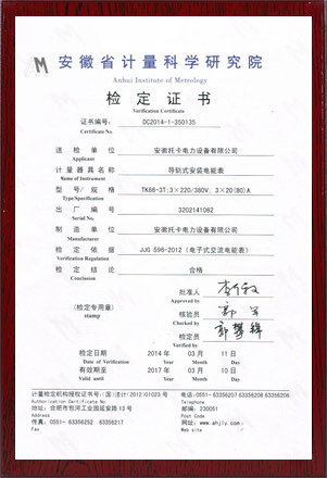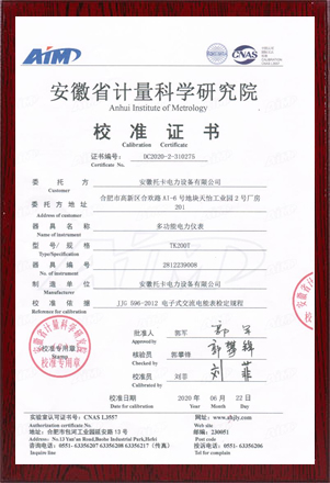 產品型號使用證書